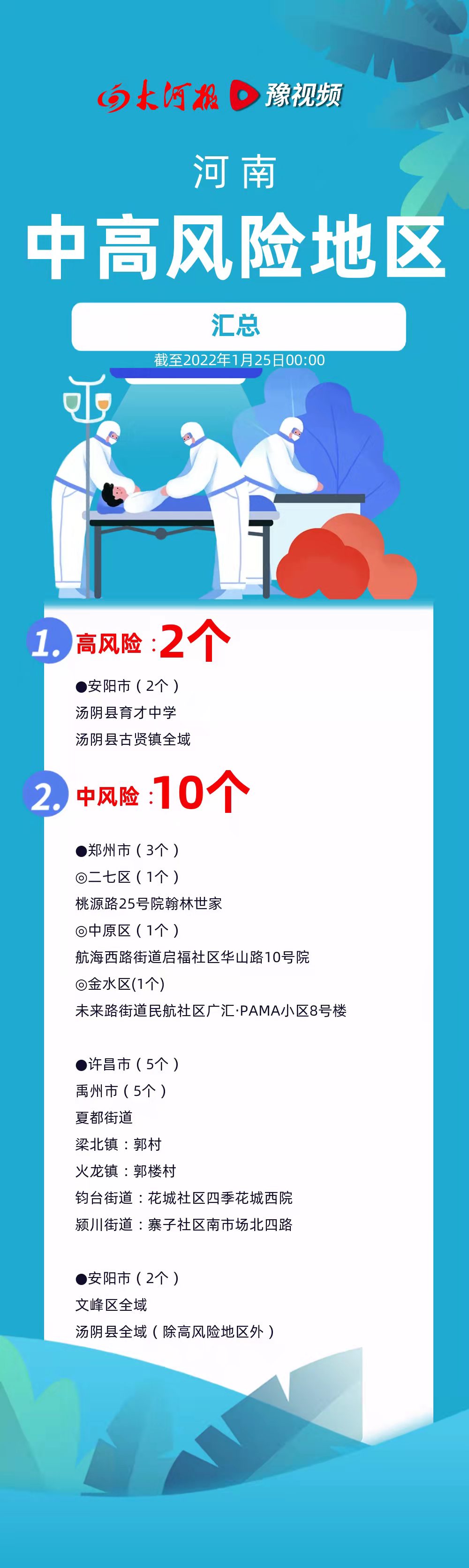 截至2022年1月25日00:00时 河南中高风险地区汇总