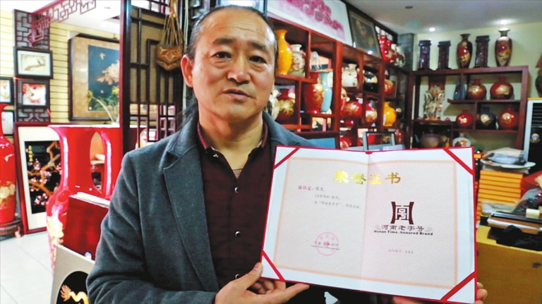 王华平展示“河南老字号”证书