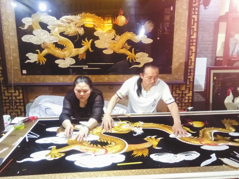第八代传承人王华平和第九代传承人王佳佳共同创作麦秆画